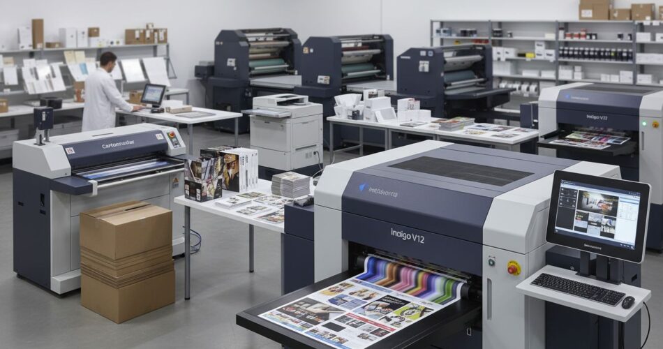 Una estrategia híbrida recomendada para imprentas online es: asignar tiradas muy largas a la Cartonmaster (offset), trasladar tiradas medias y personalizadas a la HP Indigo V12, y gestionar pedidos mediante plataformas web‑to‑print y automatización para reducir costes administrativos y de set‑up.